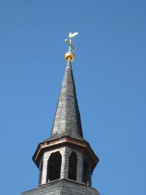 Kirchturm: Laterne mit Helm und Wetterhanh